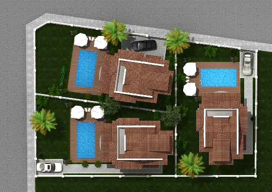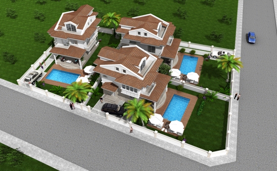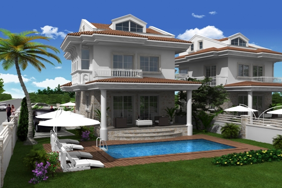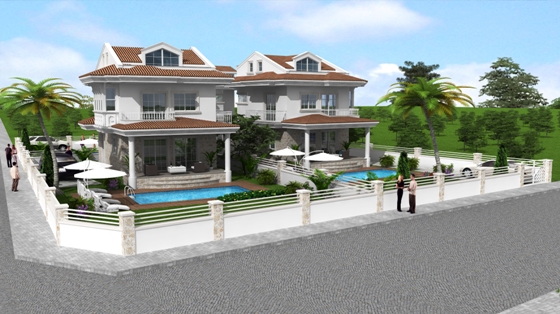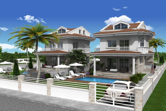 Impressive off plan three bedroom villas in Calis, each to be set on a private plot with landscaped gardens and swimming pool. There are three villas available off plan.