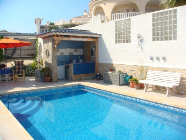 3 bedroom, 2 bathroom villa with a best views to the mountains, the sea and the to the famous La Marquesa Golf course! Also includes a private pool, a well maintained garden, driveway, summerkitchen, a bar, stove in the livingroom, and balconies all around the house to enjoy the sun all day. Situated in a quiet area, still close to all amenities that you need for a comfortable living. VIEWING IS HIGHLY RECCOMMENDED!