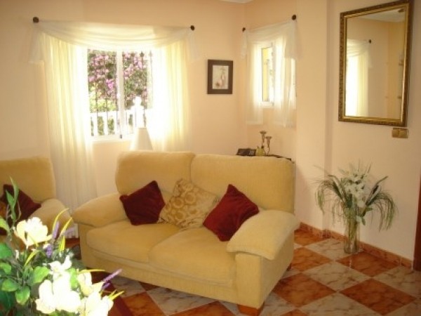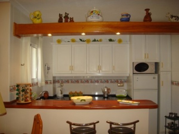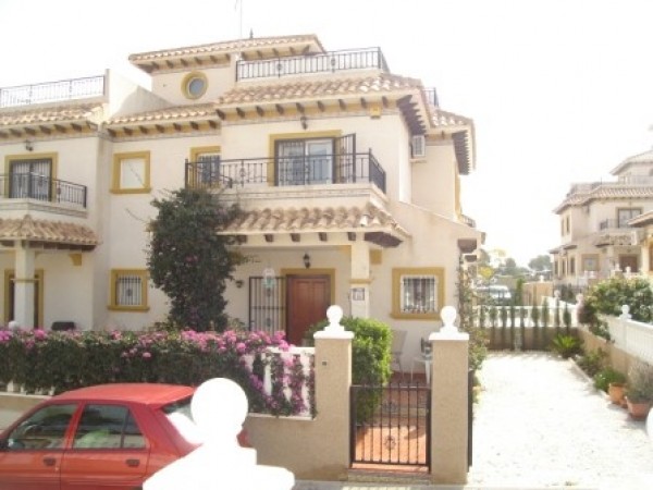 immaculately presented throughout, this 2 bedroom quad house comprises of spacious, light and airy lounge dining room with american style kitchen with appliances and breakfast bar, downstairs cloakroom. Upstairs twin bedroom, further double bedroom with patio doors onto a terrace, each bedroom with fitted wardrobes, full suite bathroom. Stairs to the solarium with storage facilities. Externally there is a tiled patio overlooking the established garden, gated off road parking. The house benefits from landline telephone, Satellite TV system, alarm, security grills/blinds , air conditioning in the lounge and is to be sold fully furnished. MUST be viewed to appreciate.