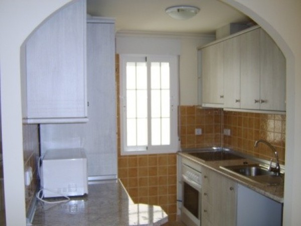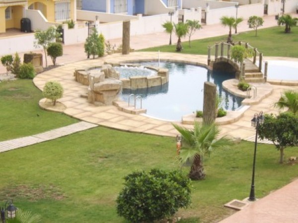 property DescriptionThis 1 year old 2 bedroom 1 bathroom upper floor apartment is located in a small private complex overlooking the lovely communal pool and gardens and comprises of lounge dining room with patio doors onto a terrace, american style fully fitted kitchen, the master bedroom with patio doors and juliet balcony, further twin room, both have built in wardrobes, independant full suite bathroom. Outside steps lead to a large solarium with storage cupboard and chiminea. The property benefits from ceiling fans, air conditioning, security grills/blinds, satellite TV and is to be sold fully furnished.-