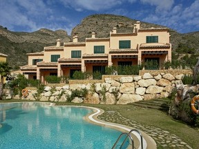 Townhouse- Sierra Cortina ResortThese Luxury townhouses consist of ,3 bedrooms, 3 bathrooms, a large living and dining area, with a separate kitchen and utility room. These properties benefit from a large front terrace and their own private garden area. Some models also boast a solarium. The sea and the mountain hold the housing state of El Pinar, in the heart of Finestrat. A luxury complex which adds to the Mediterranean architecture all the comfort and exclusiveness to this resort. This luxurious housing estate has some of the best equipment and quality materials. Added to this it has distinctive services and sports and leisure facilities including, golf, spa, tennis, and much more. All come fully furnished